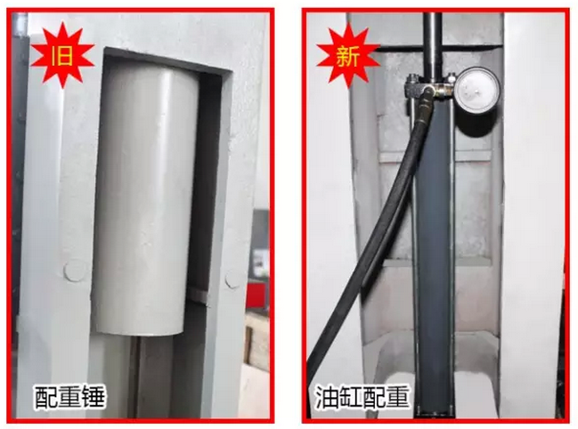 機(jī)架的配重由原先的定量配重錘更改為液壓缸配重,配重調(diào)整更靈活、使加工更平穩(wěn)。